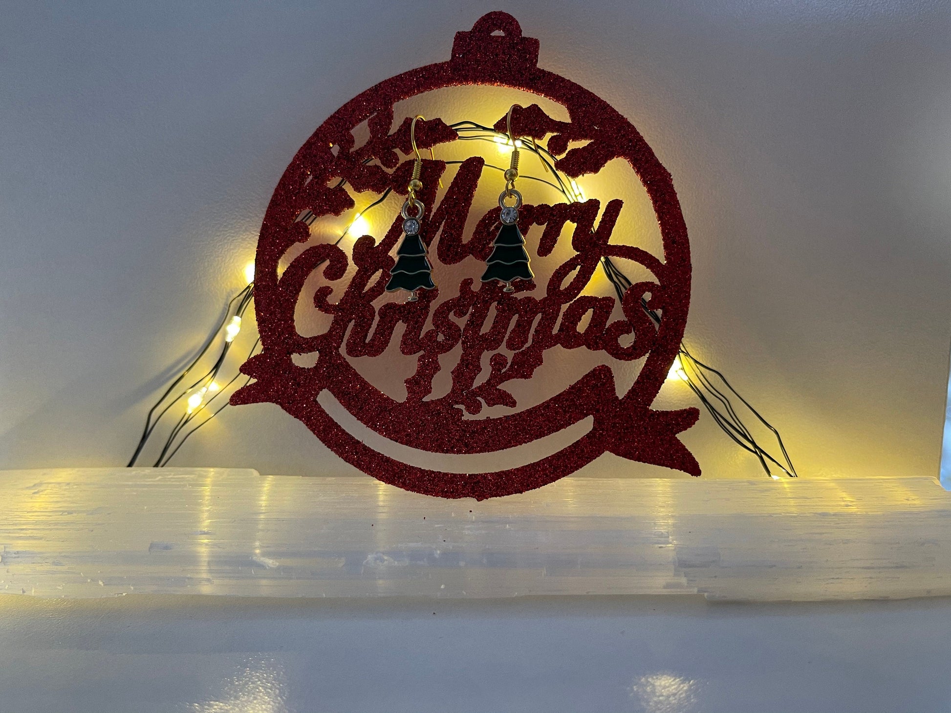 One pair of green Christmas tree earrings with gold hooks. Drop length of 2 cm.