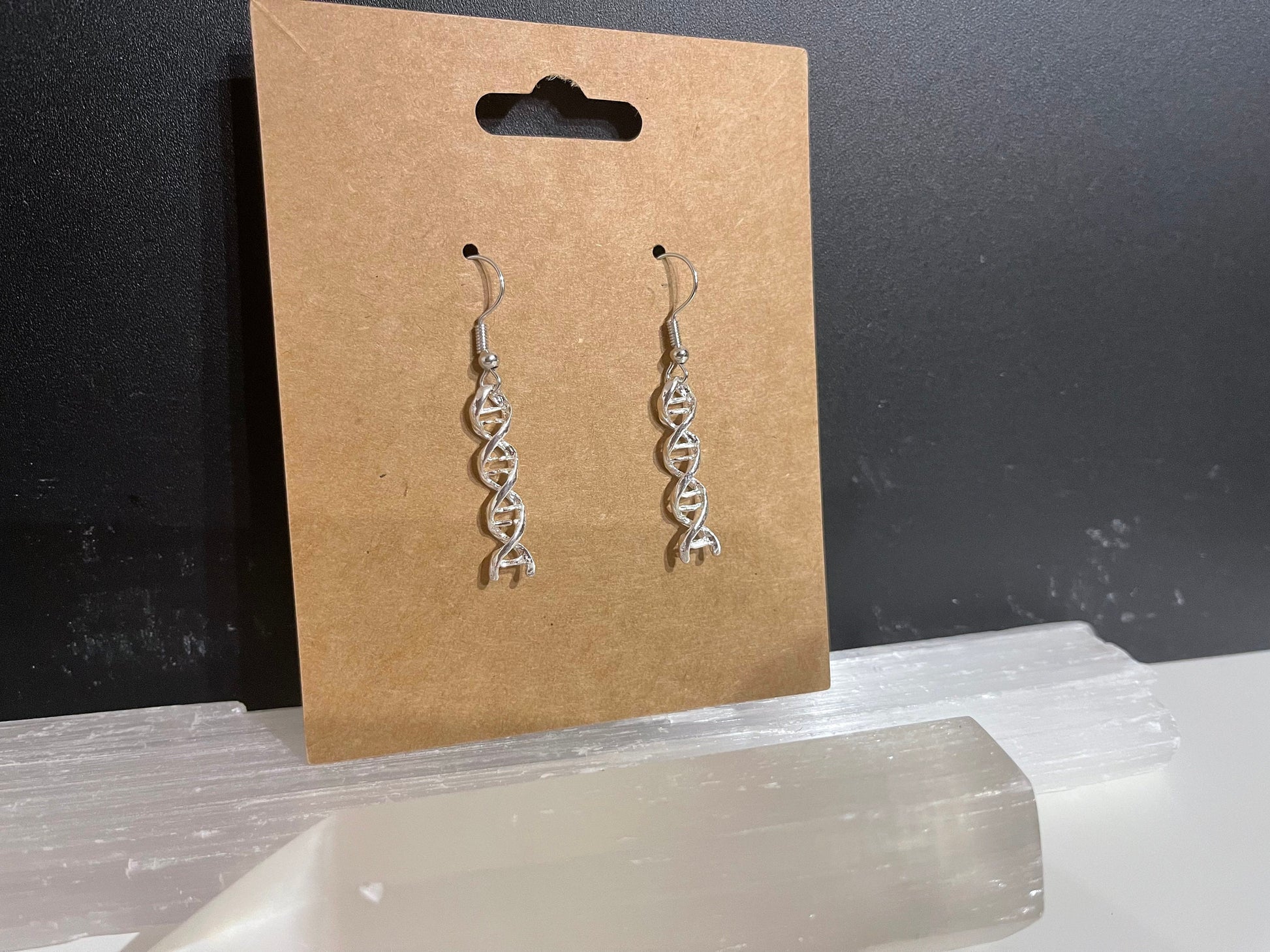 One pair of Silver coloured DNA strand earrings. With Silver coloured hooks.