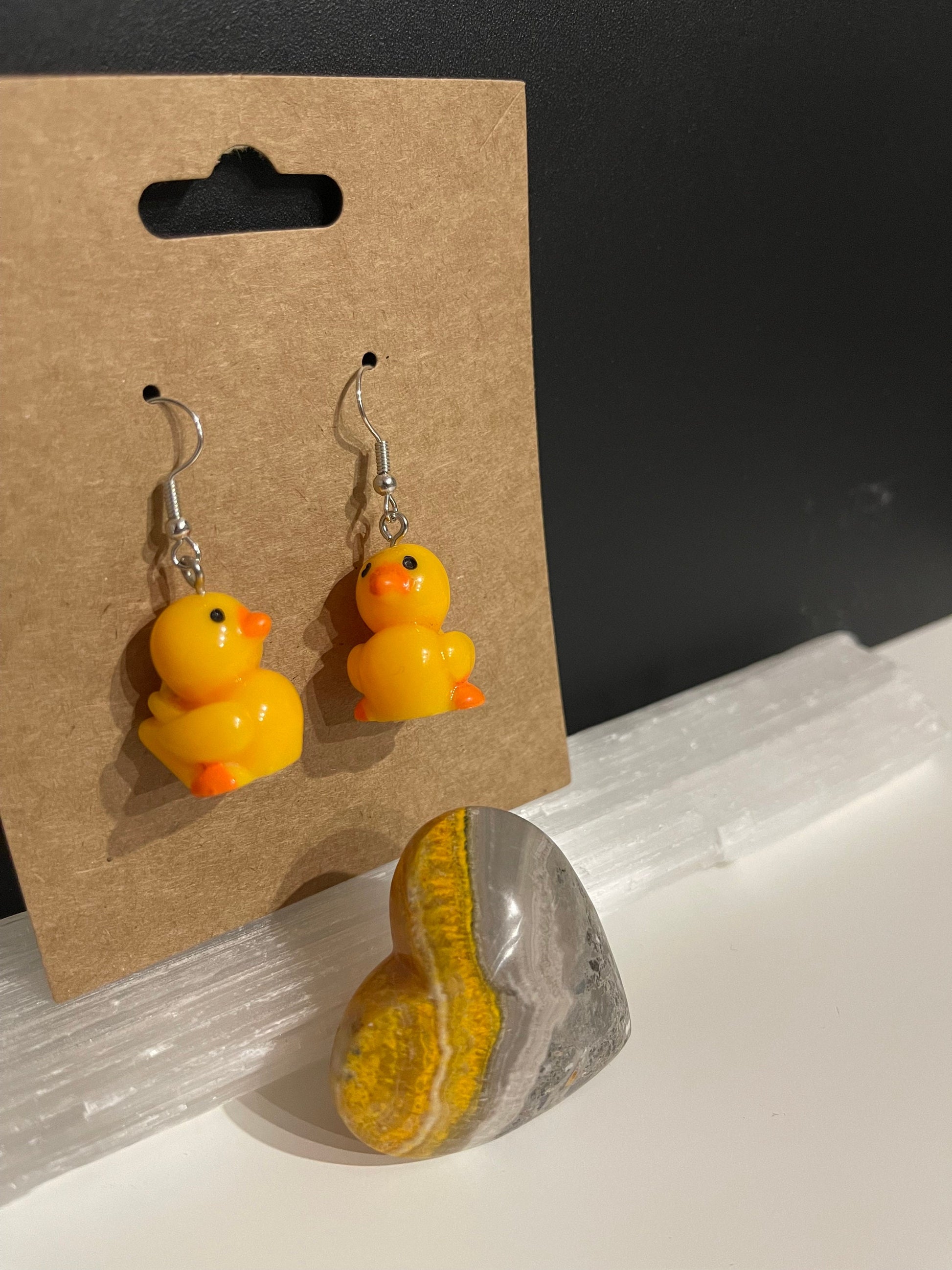 One pair of yellow duck earrings with silver coloured hooks, light weight