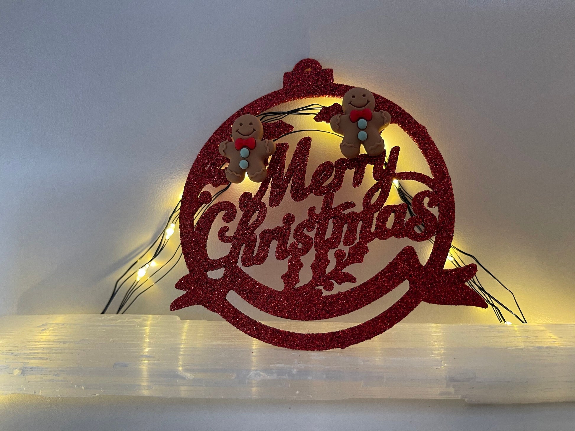 One pair of Gingerbread man stud earrings with silver coloured studs. Length 2.8 cm. Butterfly backings.